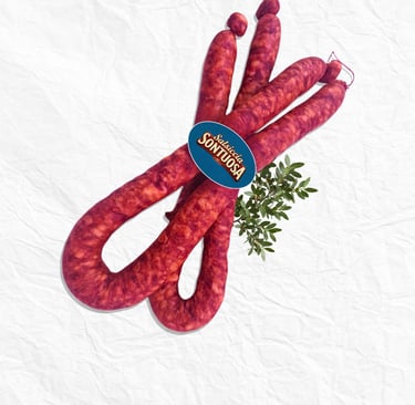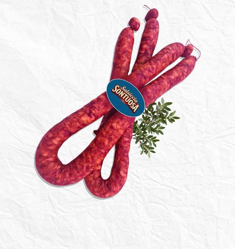 Salsiccia fresca poco stagionata e preparata con carni pregiate di suino pesante italiano, allevato con alimentazione asciutta, secondo l'antica ricetta tradizionale del territorio con coriandolo e lardello tagliato a mano, leggermente affumicata con leccio e lentisco, sia piccante che dolce.